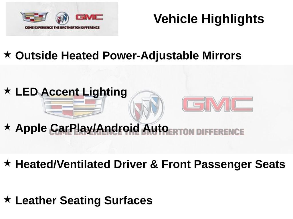 - Seating Package with leather seating surfaces, heated and ventilated front seats, and more