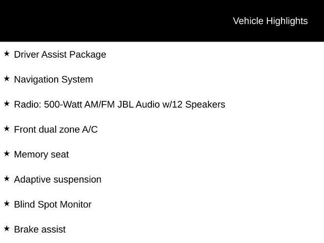 - Driver Assist Package: Blind Spot Monitor, Rear Cross Traffic Alert, Adaptive Cruise Control with Stop & Go, Clearance & Back Up Sonar