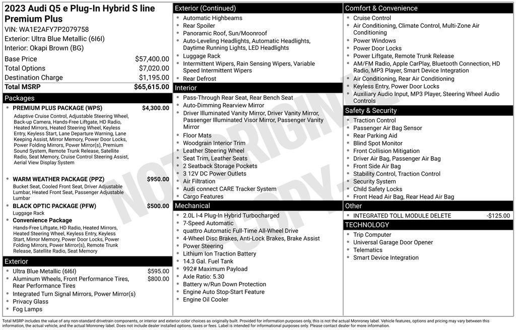 We invite you to schedule a test drive and experience the exceptional performance and refined elegance of this 2023 Audi Q5 e 55 Premium S Line. Let us demonstrate how this remarkable SUV can enhance your lifestyle and exceed your expectations. At our dealership, we are dedicated to providing you with a seamless and enjoyable purchasing process, ensuring that you drive away in the vehicle of your dreams.