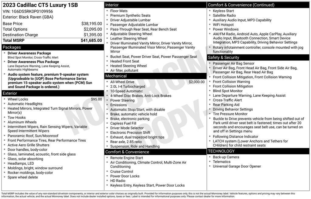 Experience the pinnacle of luxury and performance with this 2023 Cadillac CT5 Premium Luxury. Meticulously crafted to exceed your expectations, this exceptional vehicle combines elegant styling, cutting-edge technology, and a thrilling driving experience that will leave you captivated.