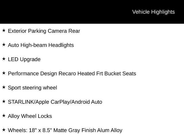 - harman/kardon Speakers, Subaru STARLINK 11.6" Multimedia Plus System, Front dual zone A/C, Brake assist, Auto High-beam Headlights, LED Upgrade, Performance Design Recaro Heated Frt Bucket Seats, Sport steering wheel, STARLINK/Apple CarPlay/Android Auto, Navigation System, Exterior Parking Camera Rear, Power moonroof, Alloy Wheel Locks, Wheels: 18" x 8.5" Matte Gray Finish Alum Alloy