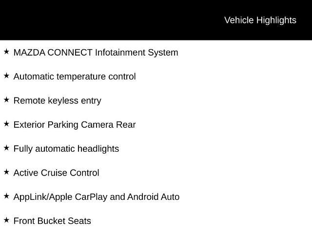 Highlighted by a stunning - BLACK REAR BUMPER GUARD, CARGO TRAY, and the renowned MAZDA CONNECT Infotainment System, this Mazda3 is a true standout in its class. Additionally, you'll enjoy the convenience of Automatic temperature control, Remote keyless entry, Exterior Parking Camera Rear, Fully automatic headlights, Active Cruise Control, and the seamless integration of AppLink/Apple CarPlay and Android Auto.