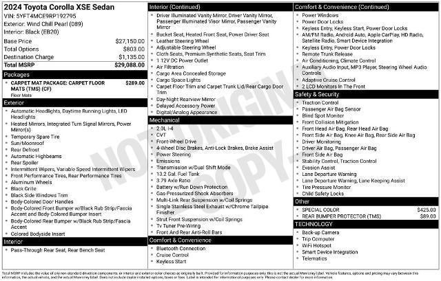 Powered by a robust 2.0L I4 DOHC 16V engine and equipped with a smooth-shifting CVT transmission, this Corolla XSE delivers an exceptional driving experience. With an impressive 31 MPG in the city and 40 MPG on the highway, you'll enjoy exceptional fuel efficiency without sacrificing performance.