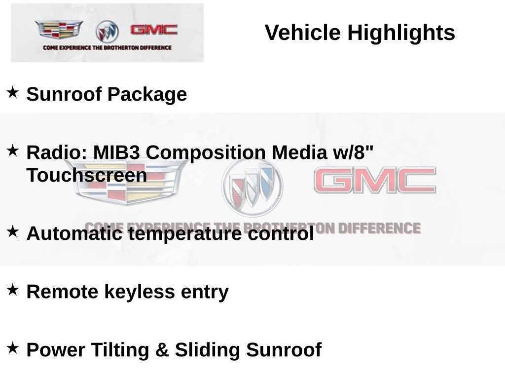 Step inside and be welcomed by the inviting CloudTex & V-Tex Leatherette Seat Trim, providing exceptional comfort and style. The Sunroof Package adds an extra touch of elegance, allowing you to bask in natural light and enjoy the great outdoors. Convenience features like Automatic temperature control, Remote keyless entry, and Heated Front Seats ensure a seamless and comfortable driving experience.