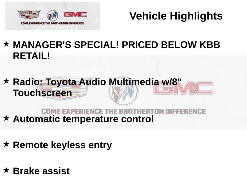 - Radio: Toyota Audio Multimedia w/8" Touchscreen